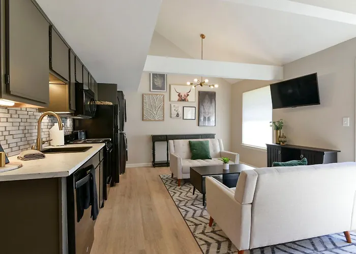 O apartamento Tee Time Fairway View And Coffee Bar With Loft oferece cozinha totalmente equipada, bem como quartos com varanda, TV de tela plana com canais via satélite e controle de temperatura. Parque Estadual de Table Rock Lake fica a 10 minutos de carro da propriedade e Museu do Titanic fica a 15 minutos de carro.